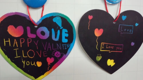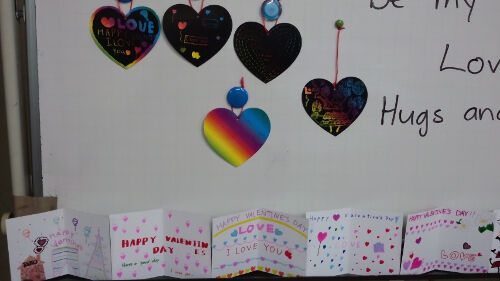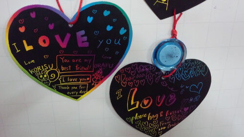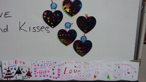 また子供たちは名前を書かずに,"Be My Valentine" "Love"