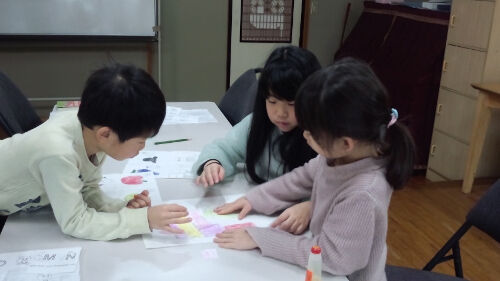 子どもたちは、Mr. Elwellから本来のバレンタインデーのお話を聞いてから、グループに分かれてバレンタンカードを作ったり、クラフトを楽しみました♡